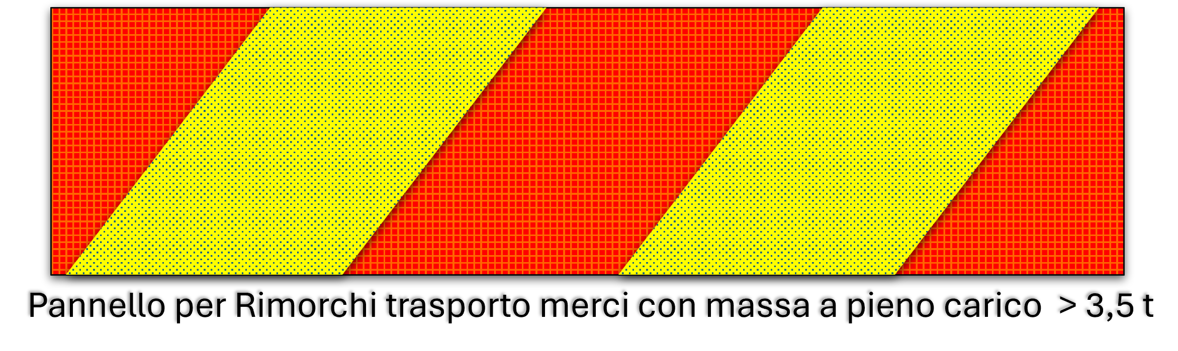 | A strisce rosso fluorescente e giallo retroriflettente per autoveicoli adibiti al trasporto di cose la cui massa complessiva a pieno carico superi le 3,5 t; | |||